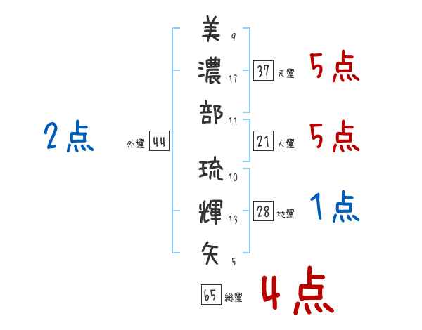 総運![]() | 美濃部琉輝矢さんの総運は65画の4つ星!幸運に恵まれ繁栄する。包容力がある。 あなたの人生を表す1番重要な運勢です。生涯を通じて影響する総合運となり、主に50歳以降の晩年期に影響を及ぼします。 |