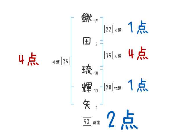 鍬田琉輝矢さんの画数の鑑定結果