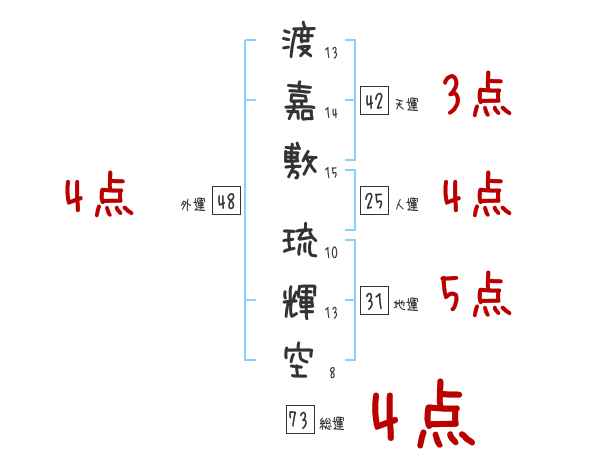 渡嘉敷琉輝空さんの画数の鑑定結果
