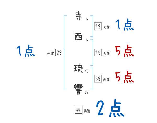 寺西琉響さんの画数の鑑定結果