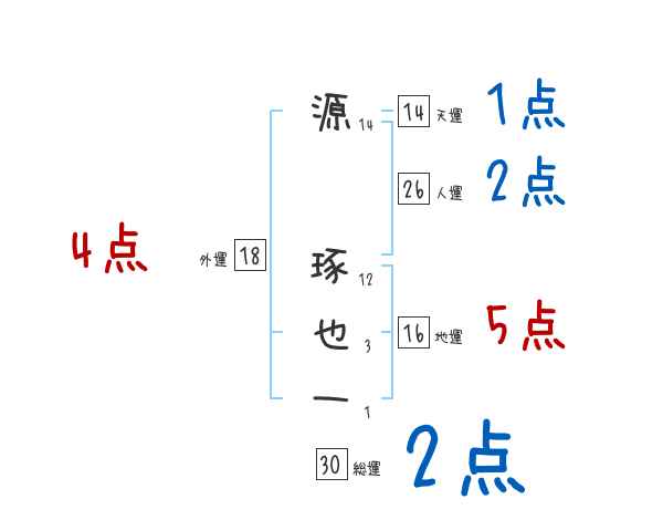 源琢也一さんの画数の鑑定結果