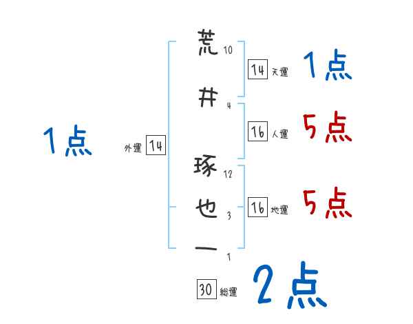 荒井琢也一さんの画数の鑑定結果