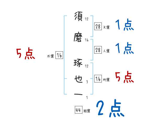 須磨琢也一さんの画数の鑑定結果