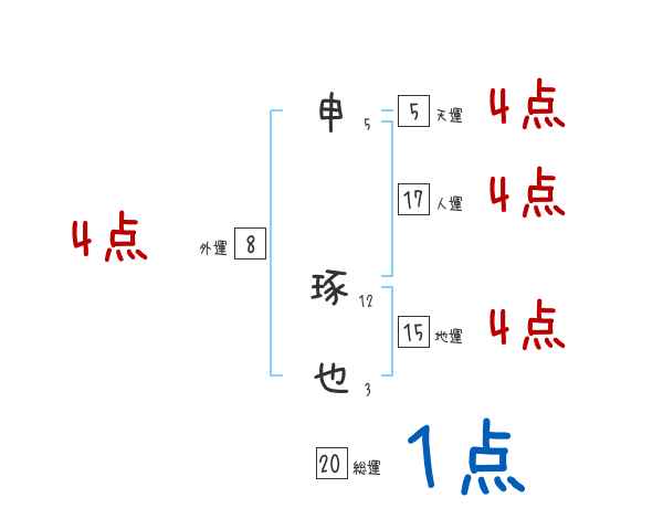 申琢也さんの画数の鑑定結果