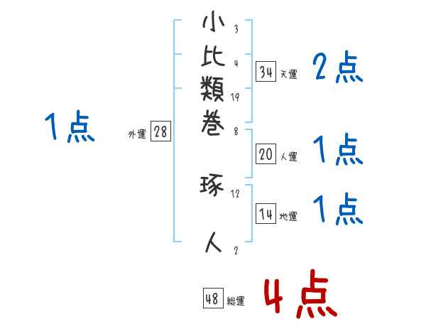 人運![]() | 小比類巻琢人さんの人運は20画の1つ星!社交が苦手。人とは違った才能があり波乱万丈な人生かも。 性格や才能などを表す2番目に重要な運勢です。人間関係や協調性、社会的な成功に影響します。主に20歳から50歳ぐらいまでの中年期の運勢を表します。 |