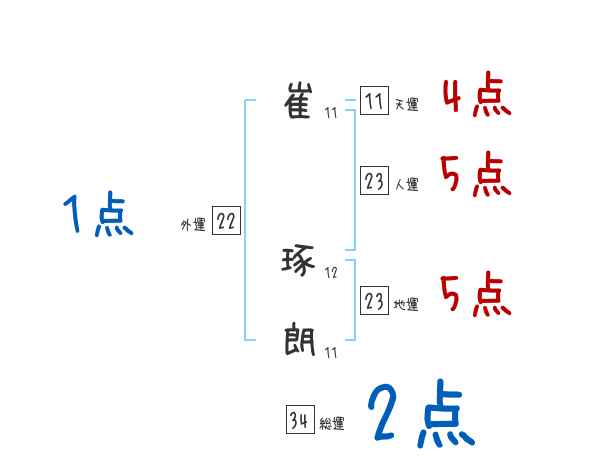 崔琢朗さんの画数の鑑定結果