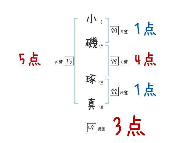 小磯琢真さんの画数の鑑定結果