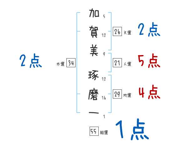 加賀美琢磨一さんの画数の鑑定結果