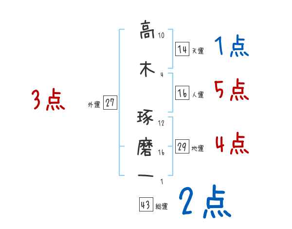 高木琢磨一さんの画数の鑑定結果
