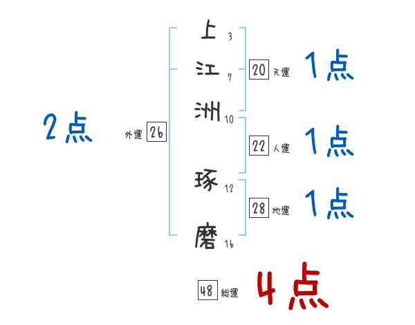 外運![]() | 上江洲琢磨さんの外運は26画の2つ星!波瀾万丈かも。信頼できる人を大事にしましょう。 生活面を象徴する運勢です。外部から受ける影響力を表し、結婚運、家庭運や職場、環境への順応性を表します。 |