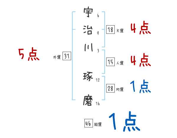 宇治川琢磨さんの画数の鑑定結果