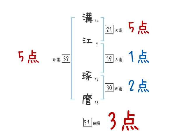 外運![]() | 溝江琢麿さんの外運は32画の5つ星!柔軟性があり成功する。チャンスが多く金運が良い。 生活面を象徴する運勢です。外部から受ける影響力を表し、結婚運、家庭運や職場、環境への順応性を表します。 |