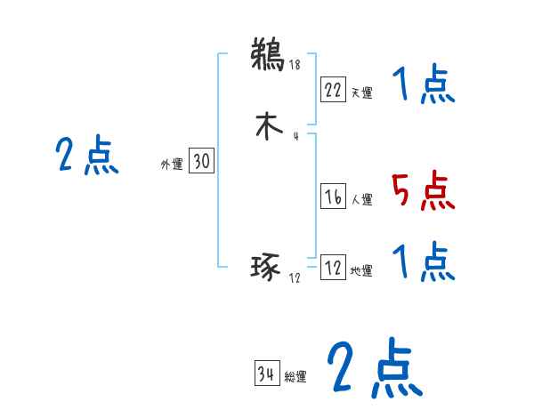 総運![]() | 鵜木琢さんの総運は34画の2つ星!独創性に優れるが、自尊心が強く災難に注意しましょう。 あなたの人生を表す1番重要な運勢です。生涯を通じて影響する総合運となり、主に50歳以降の晩年期に影響を及ぼします。 |