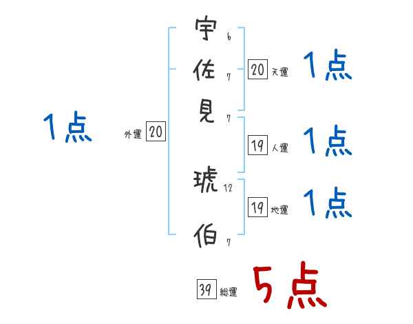 天運![]() | 宇佐見琥伯さんの天運は20画の1つ星!社交が苦手。人とは違った才能があり波乱万丈な人生かも。 家系が持つ宿命的な運勢を表します。祖先から受け継いだ苗字ですので自分の力が及びません。家柄を象徴します。 |