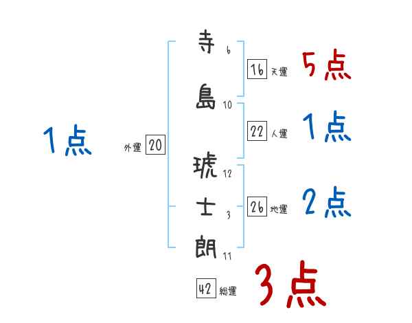 寺島琥士朗さんの画数の鑑定結果