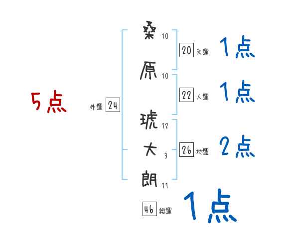 桑原琥大朗さんの画数の鑑定結果