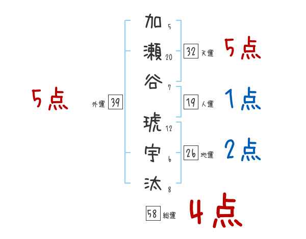 加瀬谷琥宇汰さんの画数の鑑定結果