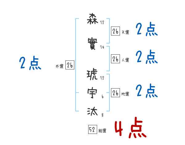 森實琥宇汰さんの画数の鑑定結果