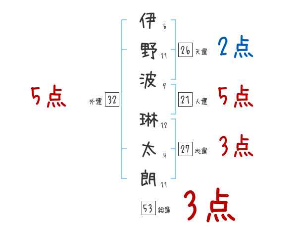 伊野波琳太朗さんの画数の鑑定結果