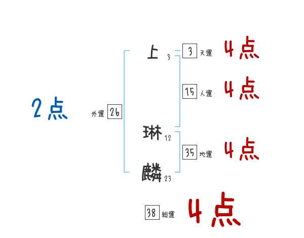上琳麟さんの総運は38画の4つ星