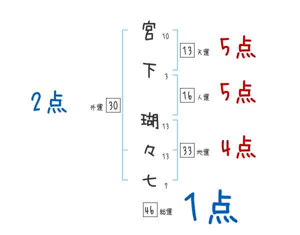 宮下瑚々七さんの画数の鑑定結果