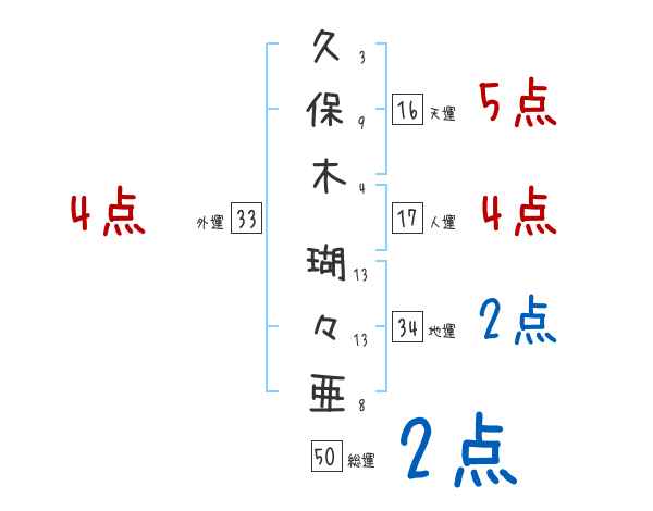 久保木瑚々亜さんの画数の鑑定結果