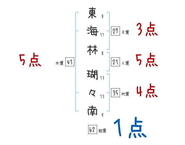 地運![]() | 東海林瑚々南さんの地運は35画の4つ星!温厚な性格で感受性が高い。穏和な性格で人望が厚い。 個性を表す基礎的な運勢です。性格形成や対人関係、行動力など家庭環境に影響されます。主に誕生してから20歳くらいまでの若年期の運勢を表します。 |