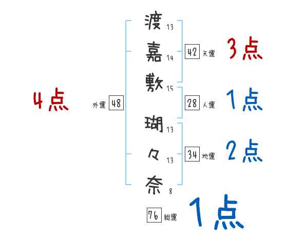 渡嘉敷瑚々奈さんの画数の鑑定結果