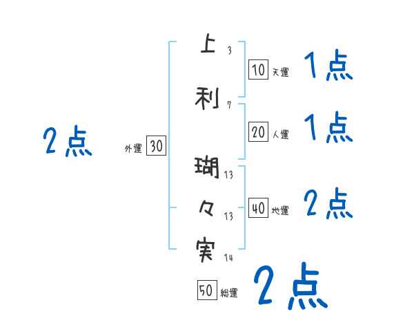 上利瑚々実さんの画数の鑑定結果