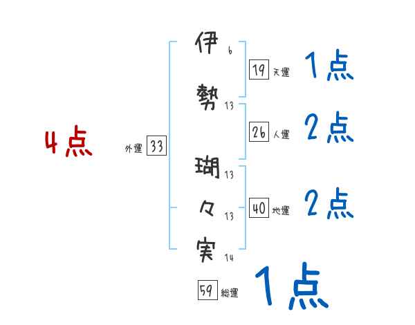 外運![]() | 伊勢瑚々実さんの外運は33画の4つ星!権力志向でプライドが高い。勇気があり運を切り開き成功する。 生活面を象徴する運勢です。外部から受ける影響力を表し、結婚運、家庭運や職場、環境への順応性を表します。 |