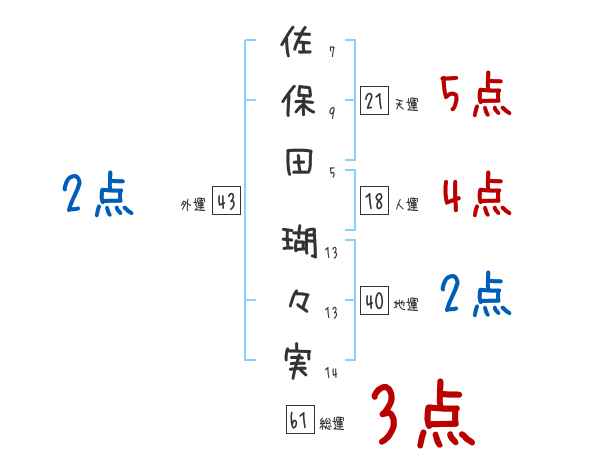 外運![]() | 佐保田瑚々実さんの外運は43画の2つ星!頑固な性格で独立心が強いかも。やや非現実的で浪費に注意しましょう。 生活面を象徴する運勢です。外部から受ける影響力を表し、結婚運、家庭運や職場、環境への順応性を表します。 |