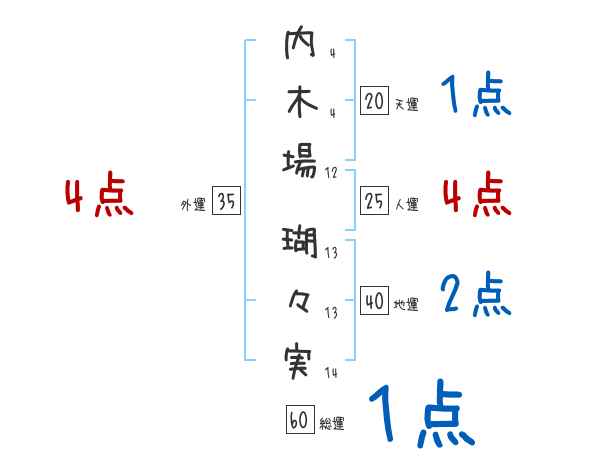 内木場瑚々実さんの画数の鑑定結果
