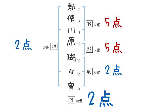 勅使川原瑚々実さんの画数の鑑定結果