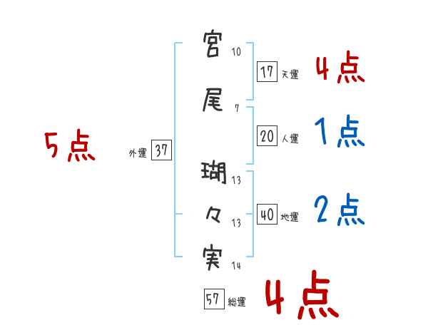 宮尾瑚々実さんの画数の鑑定結果