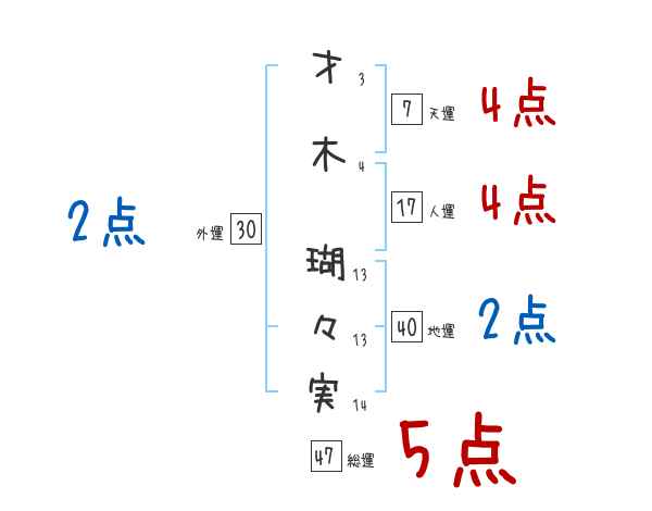 天運![]() | 才木瑚々実さんの天運は7画の4つ星!強い意志や信念を持ち独立心が強い。自立する。 家系が持つ宿命的な運勢を表します。祖先から受け継いだ苗字ですので自分の力が及びません。家柄を象徴します。 |