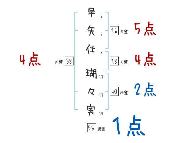 天運![]() | 早矢仕瑚々実さんの天運は16画の5つ星!人望が厚く大きく発展する。逆転成功が見える。 家系が持つ宿命的な運勢を表します。祖先から受け継いだ苗字ですので自分の力が及びません。家柄を象徴します。 |