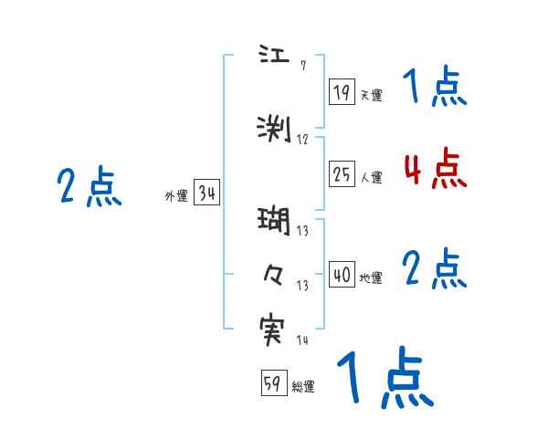 天運![]() | 江渕瑚々実さんの天運は19画の1つ星!優れた才能を持ちますが、協調性が足りないことも。周りの人と協力する事を意識しましょう。 家系が持つ宿命的な運勢を表します。祖先から受け継いだ苗字ですので自分の力が及びません。家柄を象徴します。 |