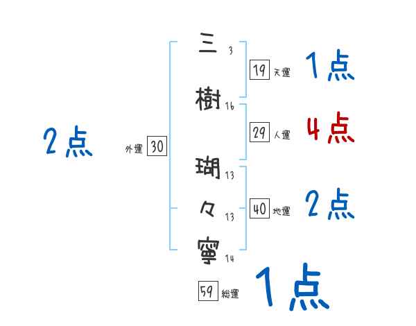 外運![]() | 三樹瑚々寧さんの外運は30画の2つ星!浮き沈みの激しさに注意しましょう。 生活面を象徴する運勢です。外部から受ける影響力を表し、結婚運、家庭運や職場、環境への順応性を表します。 |