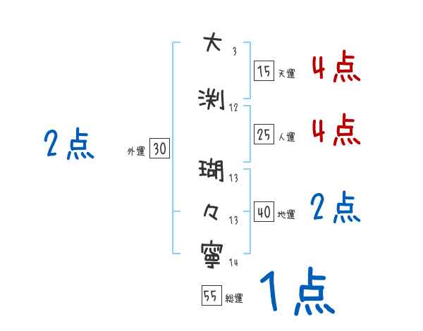 天運![]() | 大渕瑚々寧さんの天運は15画の4つ星!人徳があり出世する。順調に物事を進め円満な人生。 家系が持つ宿命的な運勢を表します。祖先から受け継いだ苗字ですので自分の力が及びません。家柄を象徴します。 |