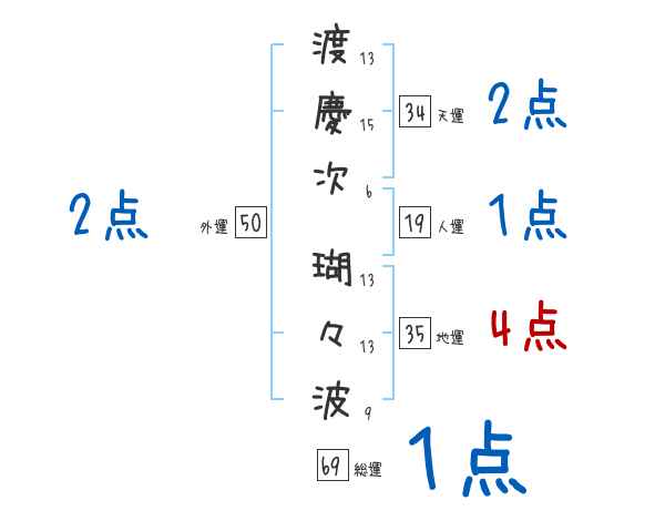 渡慶次瑚々波さんの画数の鑑定結果