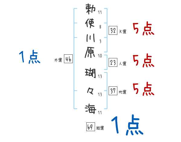 勅使川原瑚々海さんの画数の鑑定結果