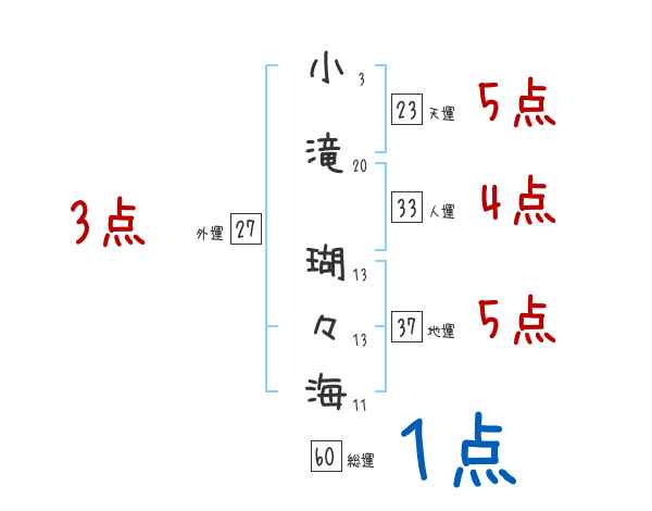 小滝瑚々海さんの画数の鑑定結果