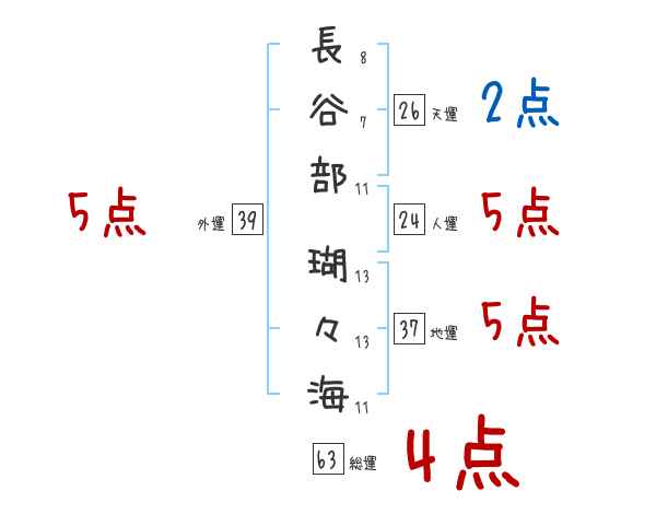 長谷部瑚々海さんの画数の鑑定結果