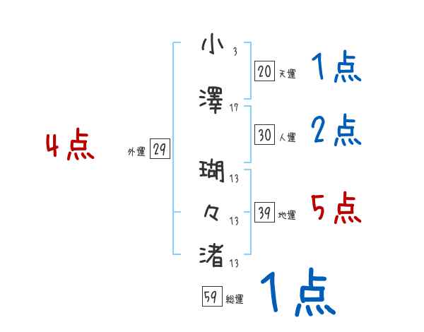 小澤瑚々渚さんの画数の鑑定結果