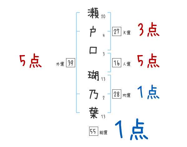 瀬戸口瑚乃葉さんの画数の鑑定結果