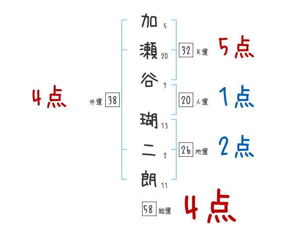 加瀬谷瑚二朗さんの画数の鑑定結果