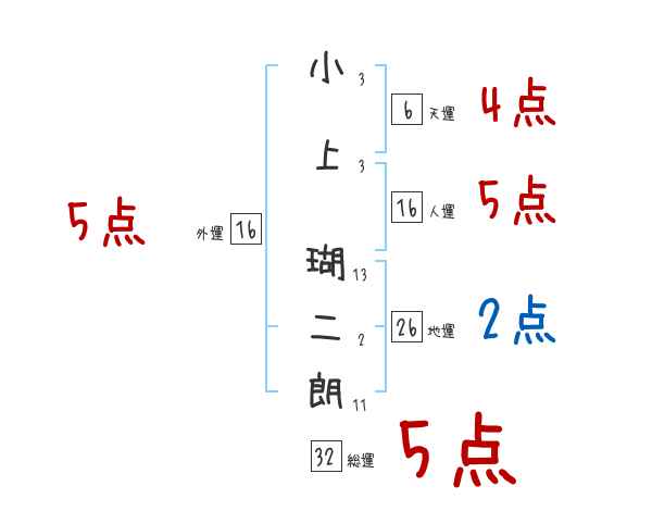 小上瑚二朗さんの画数の鑑定結果
