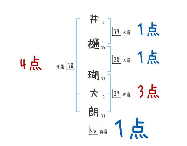 井樋瑚大朗さんの外運は18画の4つ星