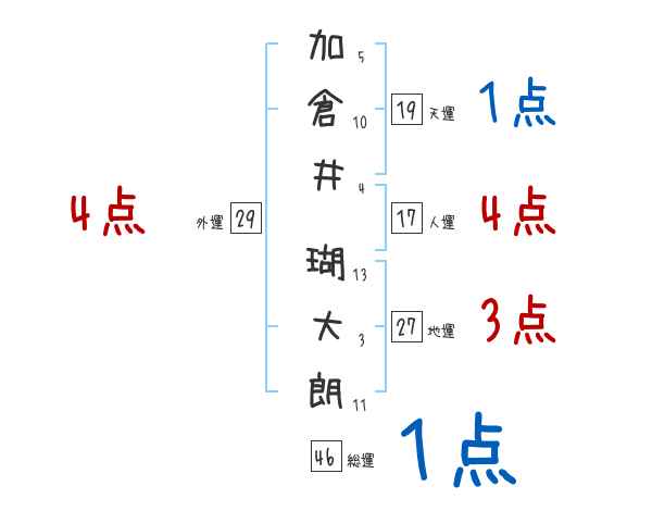加倉井瑚大朗さんの画数の鑑定結果