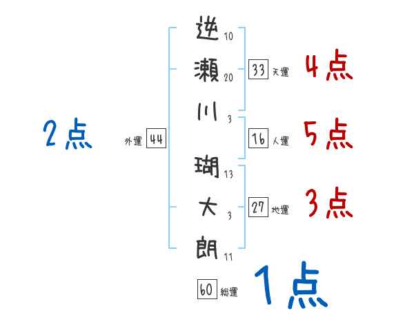 逆瀬川瑚大朗さんの画数の鑑定結果